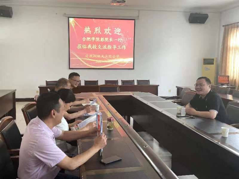 工作組一行受到吳汝綸公學的熱烈歡迎,丁九香董事長對招生工作組的到來表示熱烈歡迎。黨支部書記、常務副校長李雪磊表示將一如既往全力支持合肥學院的招生工作,今年將繼續鼓勵更多符合條件的學生填報合肥學院。并且介紹了學校在培養人才方面所采取的有效措施,展望了雙方院校未來的合作前景,提議強化兩校合作。