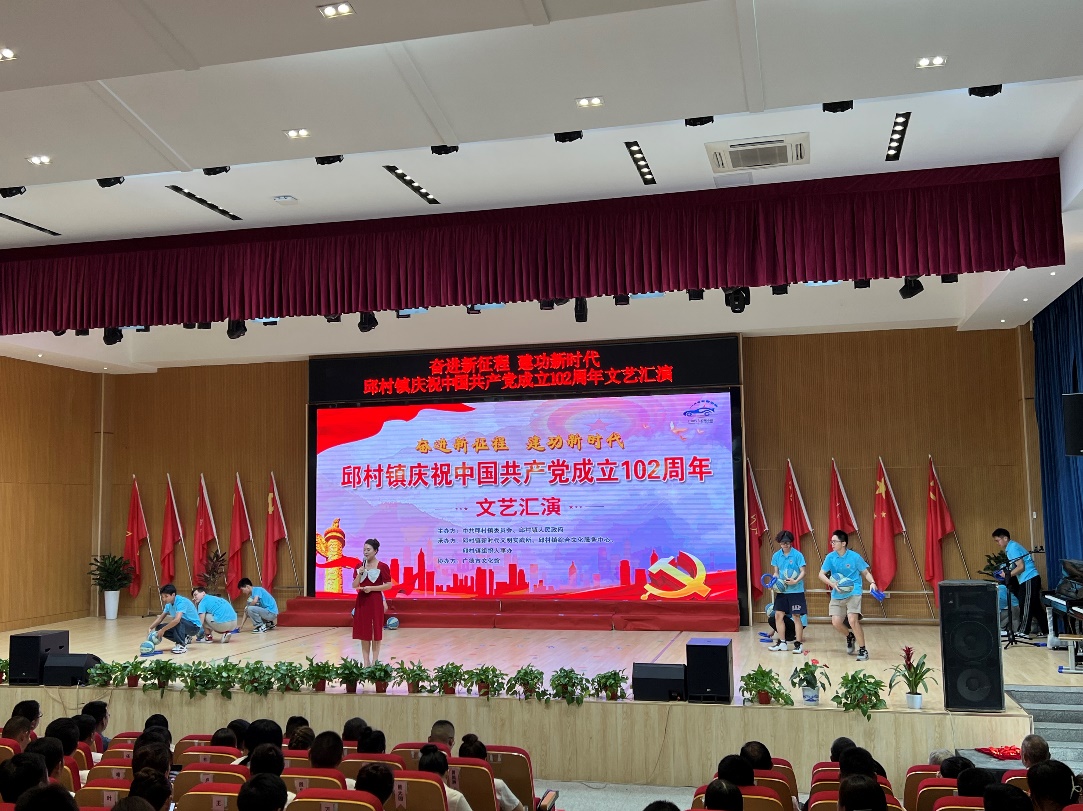 中午十二點二十,在吳嫻老師的帶領(lǐng)下,我院暑期“三下鄉(xiāng)”團隊前往邱村中心小學,參加“奮進新征程,建功新時代”——邱村鎮(zhèn)慶祝中國共產(chǎn)黨成立102周年文藝匯演,擔任現(xiàn)場志愿者。我們的隊員主要負責演出過程中的道具管理和擺放工作。大家堅守崗位,工作高效,整個演出過程中我們所負責的道具組沒有出現(xiàn)任何問題,獲得邱村鎮(zhèn)政府的贊揚。在完成志愿服務(wù)的同時,我們觀摩了本次邱村鎮(zhèn)慶祝中國共產(chǎn)黨成立102周年文藝匯演,大家深受觸動,隊員們認識到,中國共產(chǎn)黨的歷史,不僅是艱苦卓絕的奮斗史,更是中國共產(chǎn)黨人的精神鍛造史,從一艘小小紅船發(fā)展成為領(lǐng)航的巍巍巨輪,從最初只有50多名黨員,發(fā)展為擁有9800多萬名黨員的世界第一大執(zhí)政黨。偉大的中國共產(chǎn)黨穿越血與火的歷史煙云,經(jīng)歷建設(shè)和改革的風雨洗禮,形成以偉大建黨精神為源頭的精神譜系。隊員們切實感受到邱村鎮(zhèn)的發(fā)展成就和濃厚文化氛圍,并希望能用我們的社會實踐活動為邱村鎮(zhèn)發(fā)展做出貢獻。