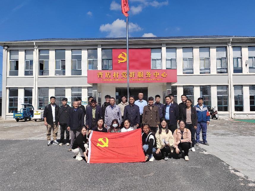 黨的二十大報告提出,全面推進鄉村振興、全面建設社會主義現代化國家,最艱巨最繁重的任務仍然在農村,為促進鄉村振興,提升學生專業素養,10月8日上午,設計學院教工第二黨支部和學生第二黨支部在長豐縣義井鎮曹店村開展支部共建主題黨日活動。