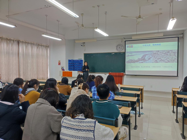 課程伊始,周坤老師通過播放淠史杭工程的相關視頻,拉開此次課程的帷幕。周坤老師首先介紹了淠史杭工程的背景,淠史杭灌區是新中國成立后興建的全國最大灌區,受益范圍涉及安徽、河南兩省的各個地區4市。接著,她詳細地為學員們講解了淠史杭精神的深刻內涵,主要表現為自力更生、艱苦奮斗的創業精神,百折不撓、頑強拼搏的奮斗精神,不怕犧牲、不計得失的奉獻精神以及尊重規律,科學嚴謹的求實精神。與此同時,她也強調淠史杭精神與“堅貞忠誠、犧牲奉獻、一心為民,永跟黨走”的大別山精神一脈相承。在感慨淠史杭工程偉大之際,我們也要敬仰老一輩淠史杭人無私奉獻的精神。在建設淠史杭的過程中,建設者們勇于創新,創造了水利史上奇跡。