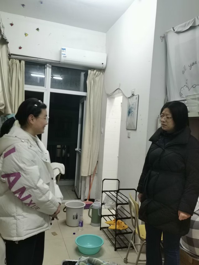 在走訪過程中,儲昭輝詳細詢問了學生的返校報道情況,與學生交流假期活動、開學準備等相關問題,對于學生學習生活、心理狀態等方面的具體困難,有針對性地提出了建設性意見。張愛萍帶領輔導員們重點查看了學生宿舍的生活設施、衛生情況、物品擺放、宿舍環境以及用電安全等情況,提醒同學們要充分做好上課和考試的準備,調整作息和學習節奏,爭取在新學期里取得更好的成績。