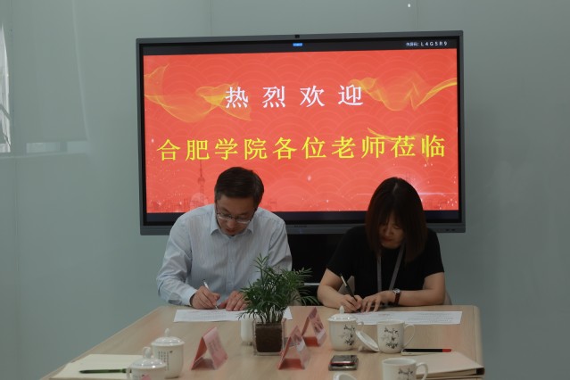 隨后,學生處處長丁增云與公司副總經理王麗影共同為“大學生就業基地”揭牌。語言文化與傳媒學院黨委書記儲昭輝代表我院與安徽半語品牌管理有限公司共同簽訂了“就業實習基地”協議。