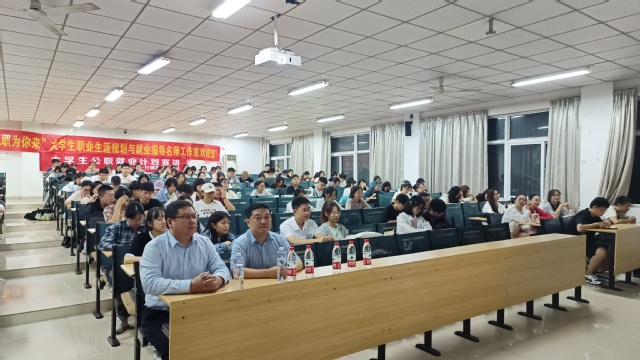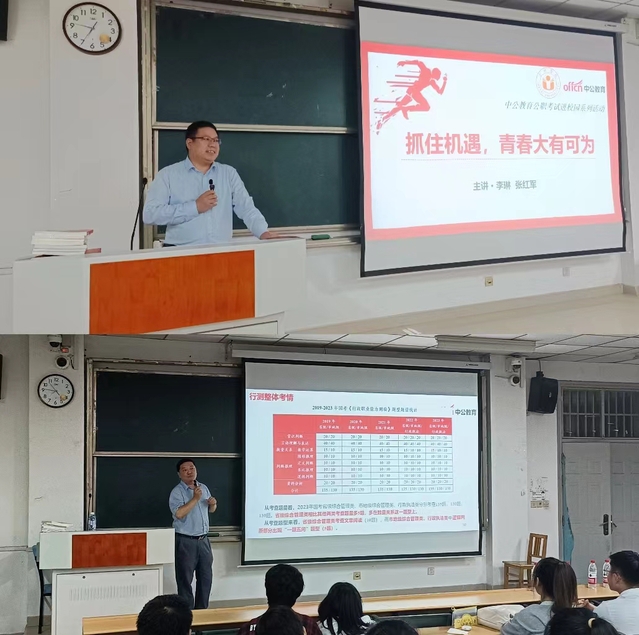 920日晚630,語言文化與傳媒學院與“職為你來”大學生職業生涯規劃與就業指導名師工作室在一區善思樓C101教室聯合舉辦大學生公職就業計劃宣講。本次講座有幸邀請到了中公教育名師李琳、張紅軍進行主講,語言文化與傳媒學院黨委副書記張愛萍受邀出席。