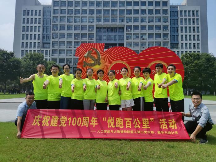 6月28日,人工智能與大數據學院教工第三黨支部組織開展慶祝建黨100周年“悅跑百公里”活動。從凌晨1點到上午9點50分,老師們完成了長達100公里的跑步接力,向黨的百歲生日獻禮。