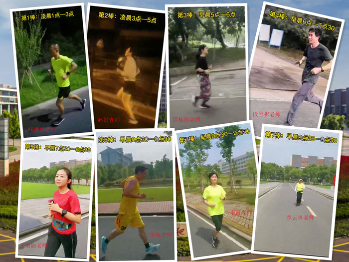 正值期末階段,老師們的工作任務較為繁重,為了不影響正常工作,經過管梅、錢澤強、趙娟等老師前期的仔細籌劃,將6月28日凌晨1點定為此次悅跑接力百公里活動的啟動時間。按照既定的分時段安排,錢澤強、趙娟、邵桂偉、段寶彬、王麗麗、李旭、李霞、章云冉等老師順利完成了接力跑。
