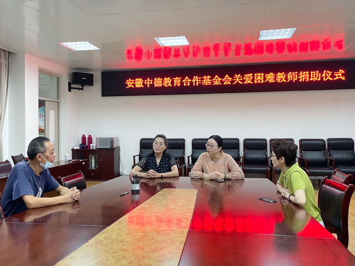 7月13日上午,安徽中德教育合作基金會管理辦公室主任劉金平受基金會理事長陳秀委托,同學校人事處處長陳愛娟共赴生物食品與環境學院,看望并慰問我校生物工程系患病教師王杏文家屬。