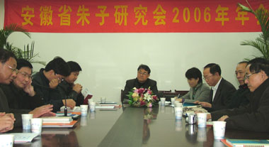 12月 9 日下午,安徽省朱子研究會于合肥學院中文系會議室召開了2006年年會。原安徽省副省長、安徽省朱子研究會會長龍念、安徽大學副校長李仁群、合肥學院院長趙良慶出席會議。會議由安徽省朱子研究會秘書長、中文系副主任詹向紅主持,來自全省各高校、科研機構、新聞單位的30多名理事、常務理事到會。