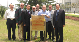 會(huì)見后,費(fèi)柏市長一行還到外國語言文學(xué)系看望了德語班學(xué)生及教師,并在中德友誼樹前合影留念。隨德國奧斯納布呂克市市長費(fèi)柏一行來訪有市議會(huì)3個(gè)黨派的議員和媒體記者。