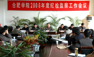 3月16日下午,“合肥學院2006年度紀檢監察工作會議”在院北區5樓會議室召開。院領導和處級以上干部70余人出席會議。