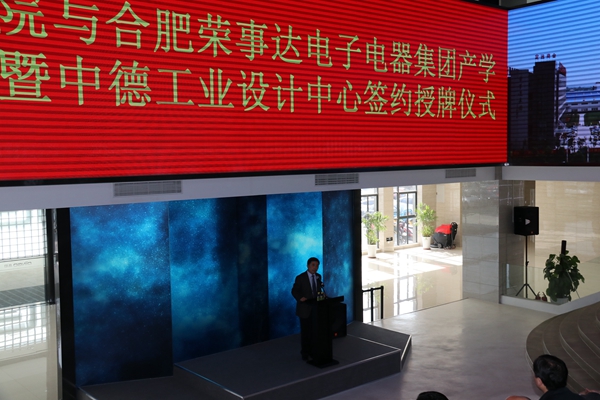 3月31日下午,合肥學(xué)院與榮事達(dá)電子電器集團(tuán)“產(chǎn)學(xué)研基地暨中德工業(yè)設(shè)計(jì)中心”簽約授牌儀式在榮事達(dá)電子電器集團(tuán)舉行。出席本次活動(dòng)的有榮事達(dá)電子電器集團(tuán)潘保春董事長(zhǎng)、合肥學(xué)院藝術(shù)設(shè)計(jì)系主任謝海濤教授、長(zhǎng)豐縣石磊副縣長(zhǎng),以及企業(yè)其他領(lǐng)導(dǎo)、員工和學(xué)校師生。活動(dòng)在熱烈的氣氛中有序進(jìn)行,榮事達(dá)電子電器集團(tuán)鄭德國(guó)副總裁主持本次活動(dòng)。