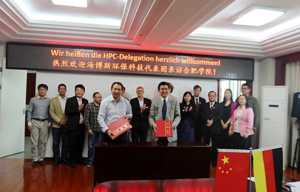 會談后,俞志敏代表合肥學院生物與環境工程系與勵源海博斯(合肥)環保科技有限公司簽署全面合作協議。來賓一行還參觀了“中德共建合肥學院三十周年展”、合大環境檢測有限公司及我校分析測試中心。