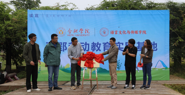 雙方代表簽署了《合肥學院語言文化與傳媒學院勞動實踐教育基地合作協議》,殷明明和孫陽陽共同為基地揭牌。
