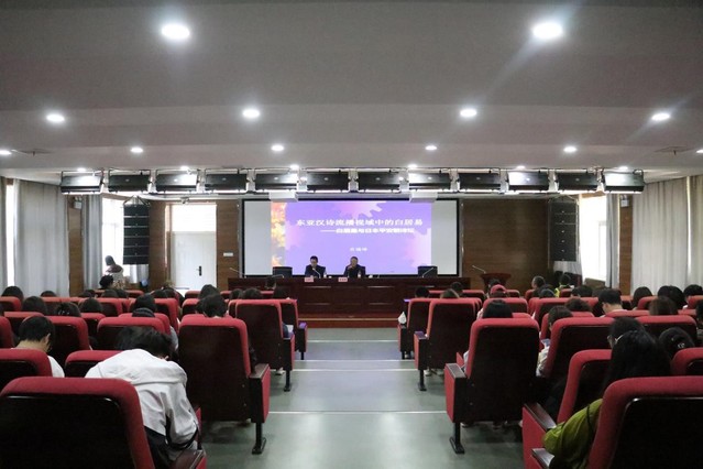 4月18日下午三點,由合肥大學科研處、語言文化與傳媒學院主辦的南艷湖大講堂學術講座在一期六號樓報告廳順利舉行。本次講座邀請的主講嘉賓是浙江工業大學肖瑞峰教授,他的報告題目為“東亞漢詩流播視域中的白居易”。講座由語言文化與傳媒學院院長丁增武教授主持,副院長查金萍教授以及80余位師生共同參加。